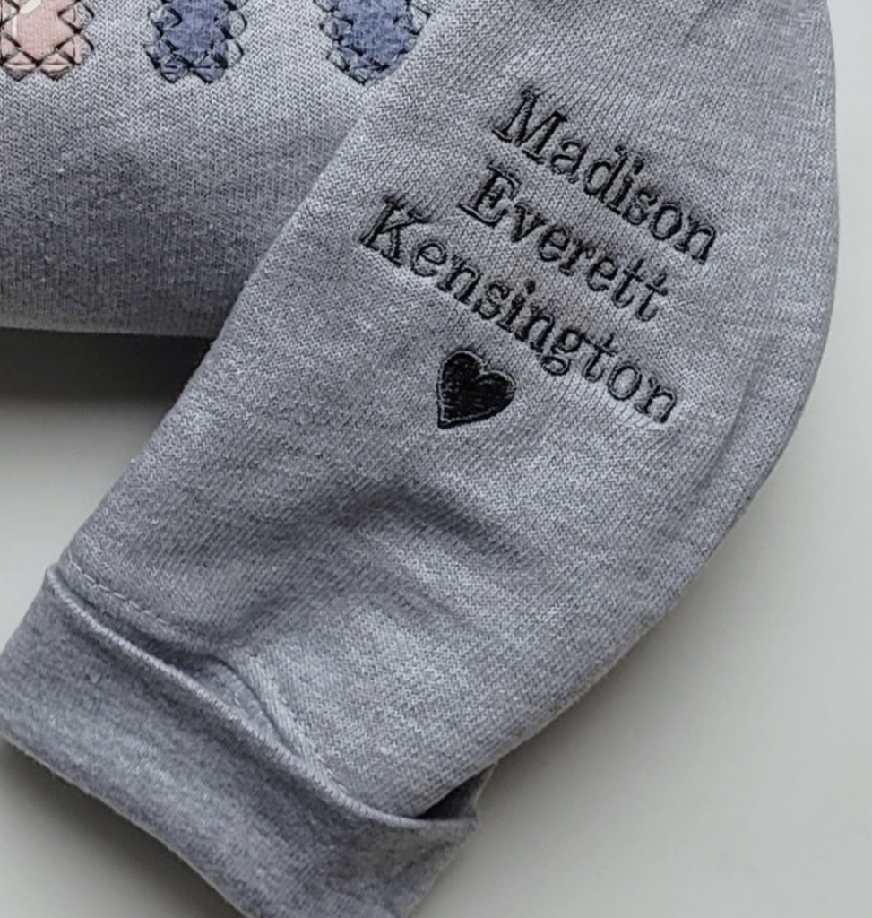 Introducing the Keepsake Crewneck sweater, a sentimental way to keep your little one's clothing close to your heart. Made with embroidered appliqué using your onesies/sleepers, these sweatshirts will last forever. Add a special touch to your wardrobe with these sweaters. We are truly obsessed and you will be too.